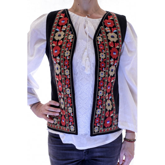 Vesta traditionale bej cu motive geometrice maro cu negru maro