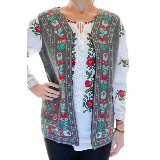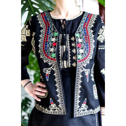 Vesta traditionala romaneasca brodata la masina cu motive nationale traditionale romanesti, veste traditionale, veste brodate, veste din lana, poncho din lana.
