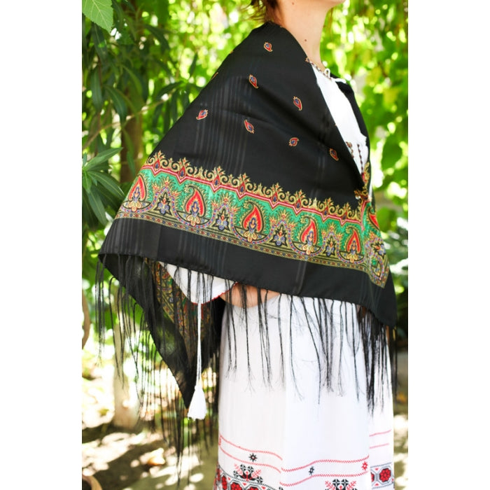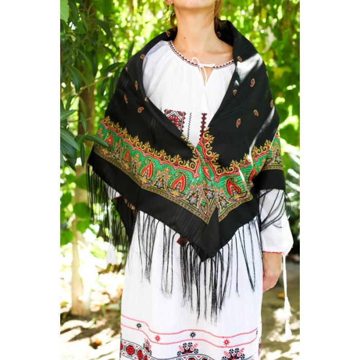 - Eșarfe și șaluri tradiționale, brodate sau imprimate, ideale pentru a accesoriza orice ținută, fie tradițională, fie modernă.