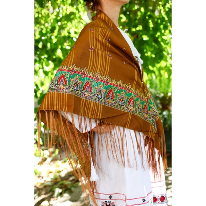 - Eșarfe și șaluri tradiționale, brodate sau imprimate, ideale pentru a accesoriza orice ținută, fie tradițională, fie modernă.