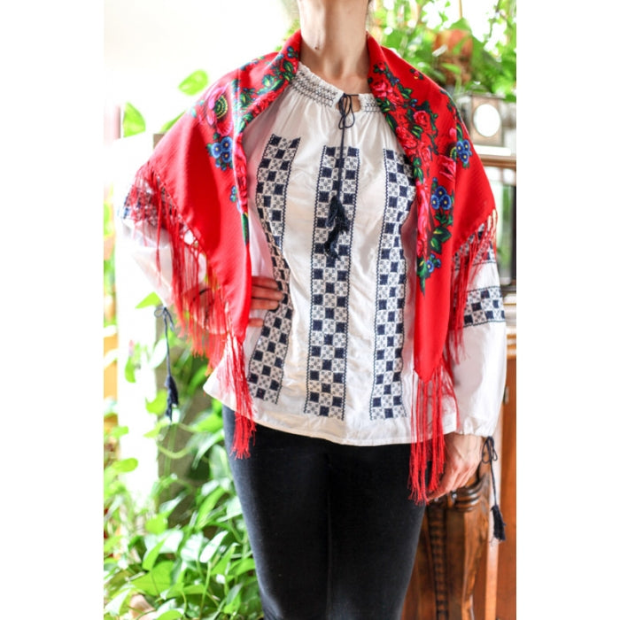 - Eșarfe și șaluri tradiționale, brodate sau imprimate, ideale pentru a accesoriza orice ținută, fie tradițională, fie modernă.