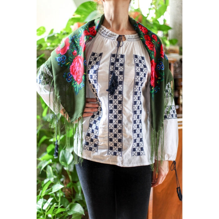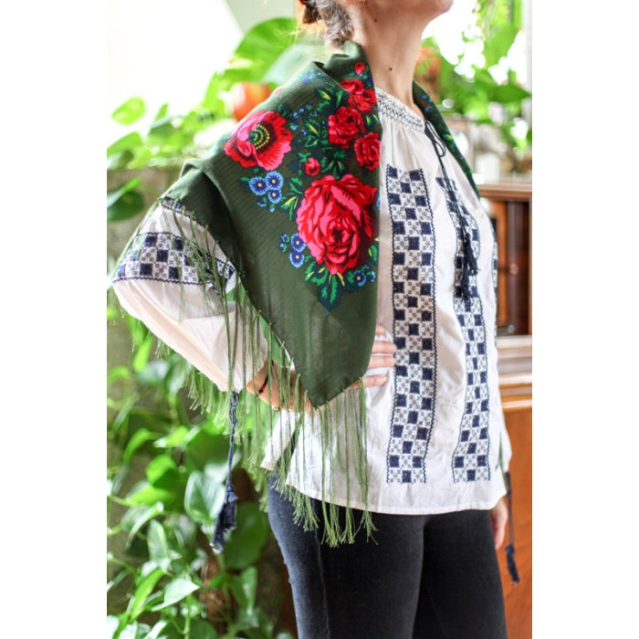 - Eșarfe și șaluri tradiționale, brodate sau imprimate, ideale pentru a accesoriza orice ținută, fie tradițională, fie modernă.