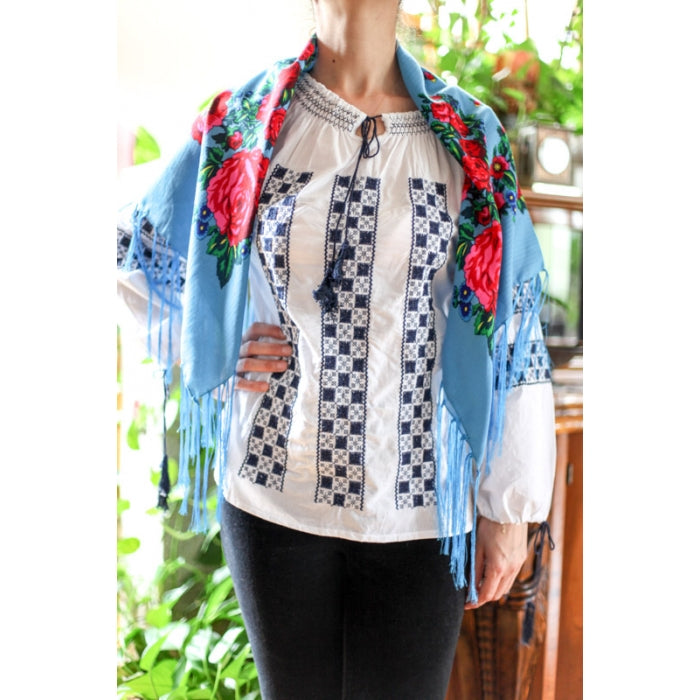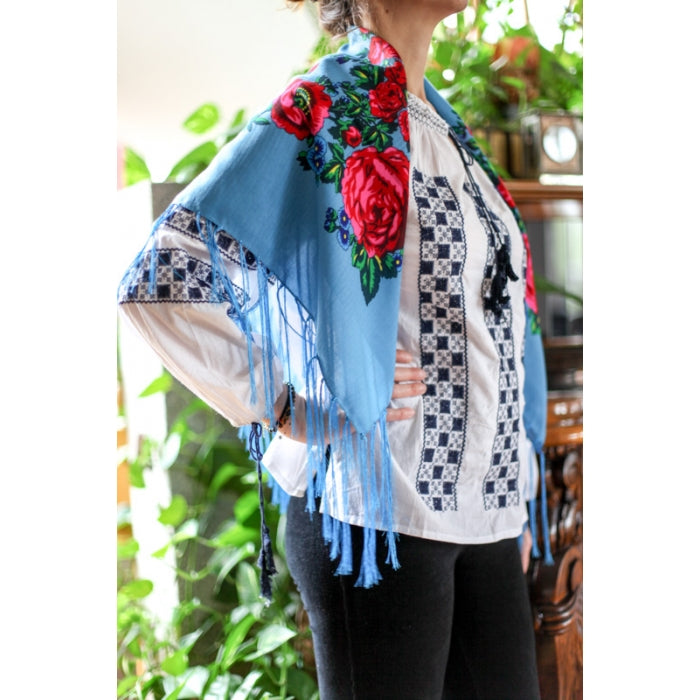 - Eșarfe și șaluri tradiționale, brodate sau imprimate, ideale pentru a accesoriza orice ținută, fie tradițională, fie modernă.
