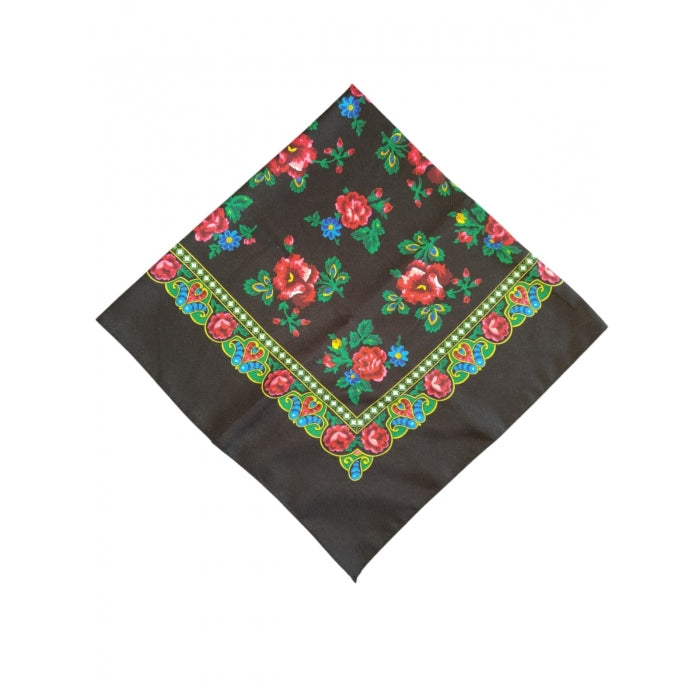 Batic traditional negru cu flori dimensiuni 75x75cm model Ana