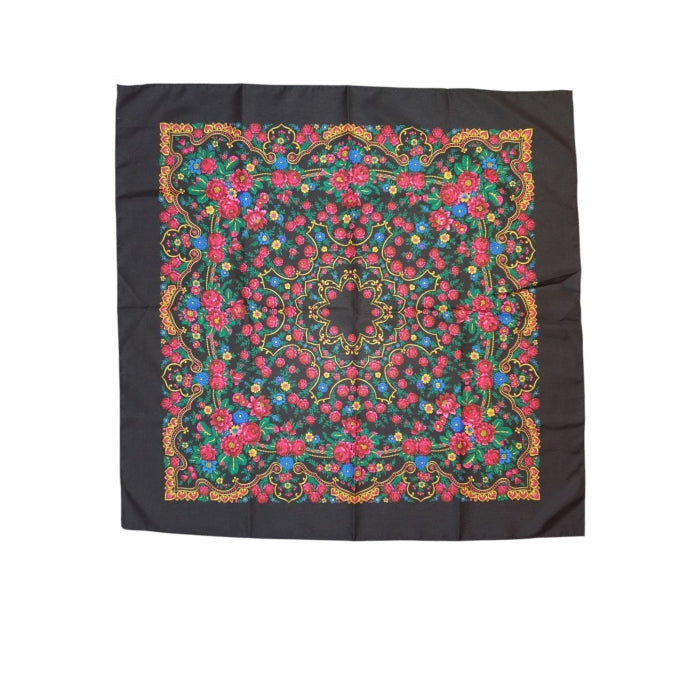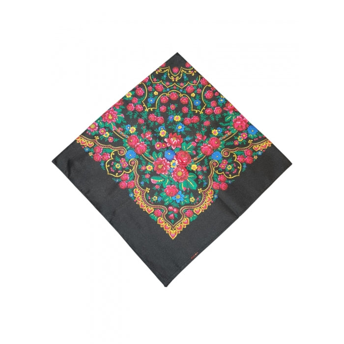 Batic traditional negru cu flori dimensiuni 75x75cm Model Ana5