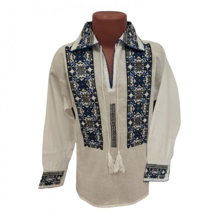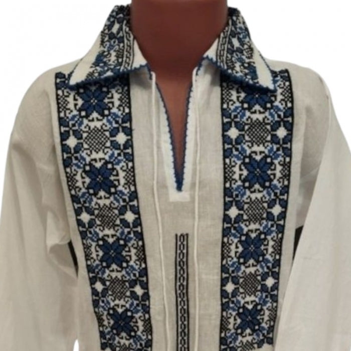 Camasa romaneasca pentru barbati cu model traditional brodat la masina.