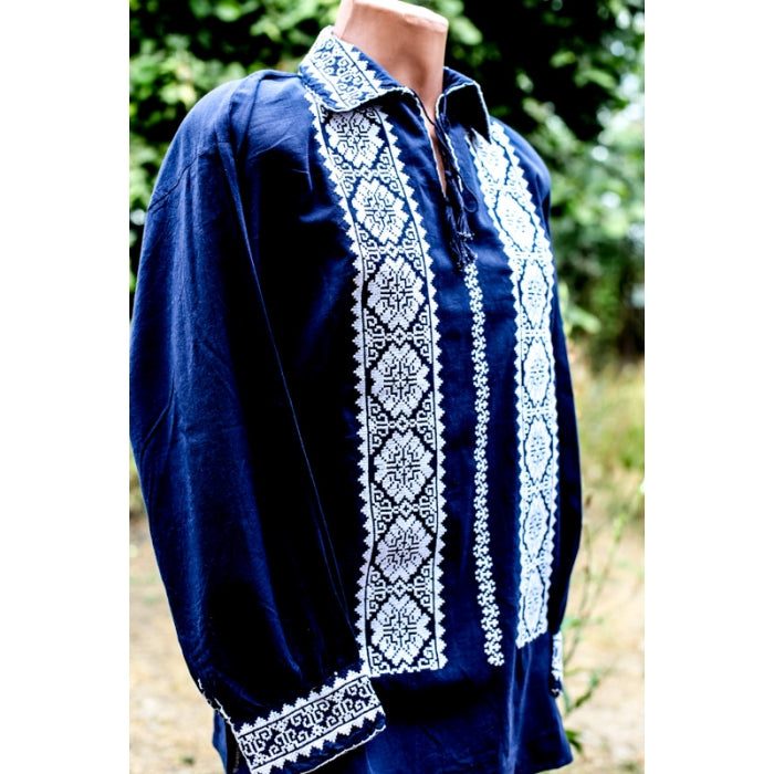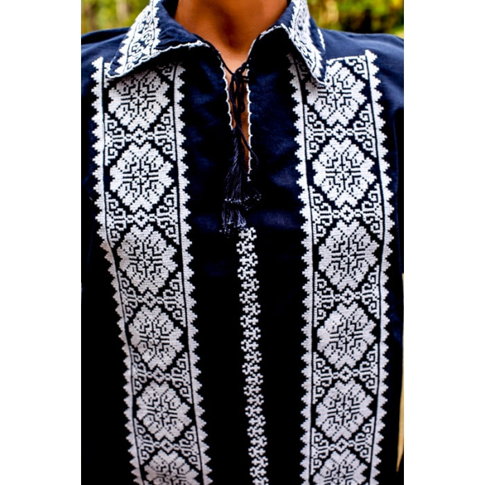 Camasa romaneasca pentru barbati cu model traditional brodat la masina.