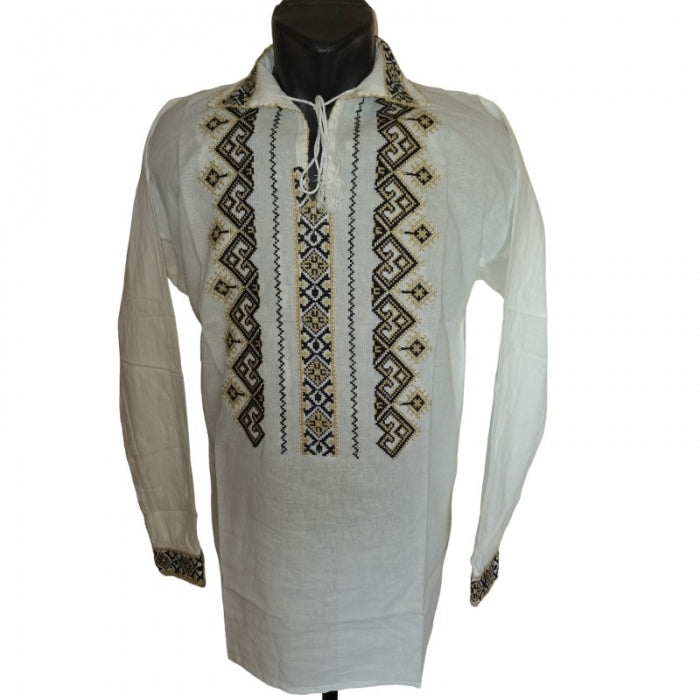 Camasa romaneasca pentru barbati cu model traditional brodat la masina.