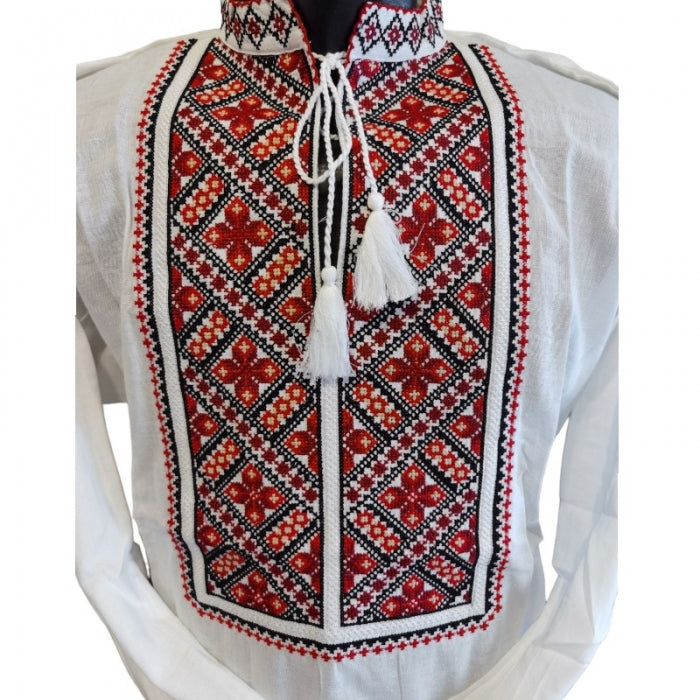 Camasa romaneasca pentru barbati cu model traditional brodat la masina.