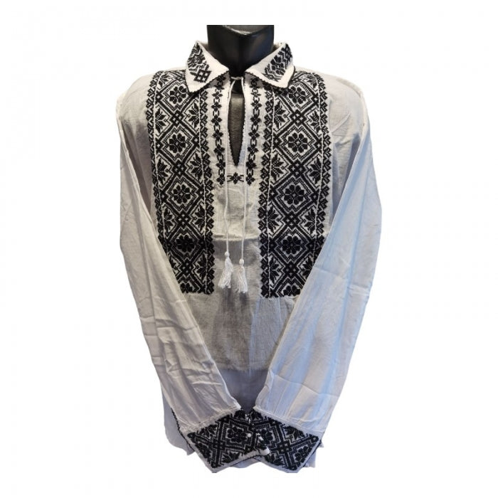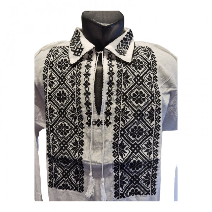Camasa romaneasca pentru barbati cu model traditional brodat la masina.