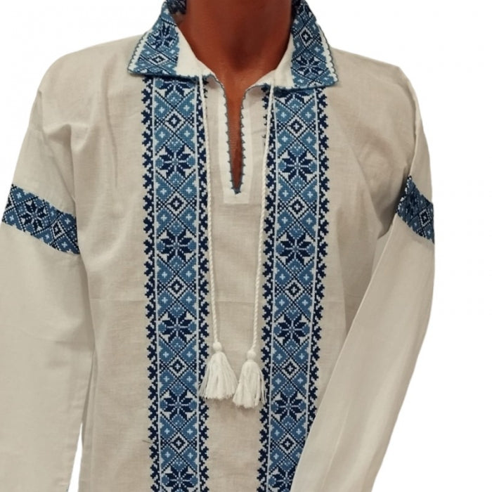 Camasa romaneasca pentru barbati cu model traditional brodat la masina.