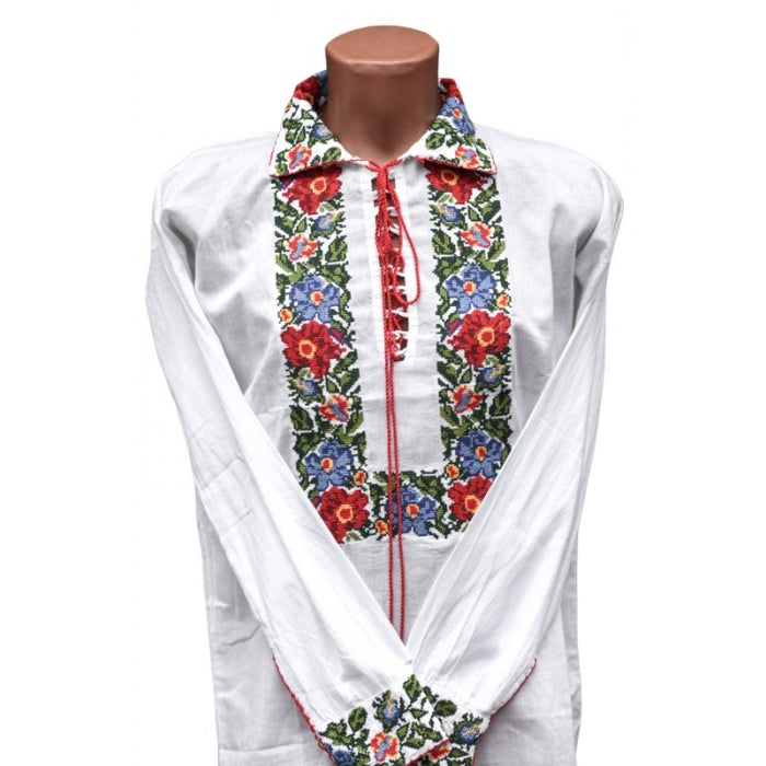 Camasa romaneasca pentru barbati cu model traditional brodat la masina.