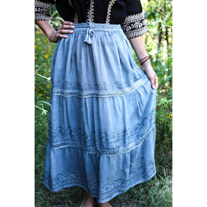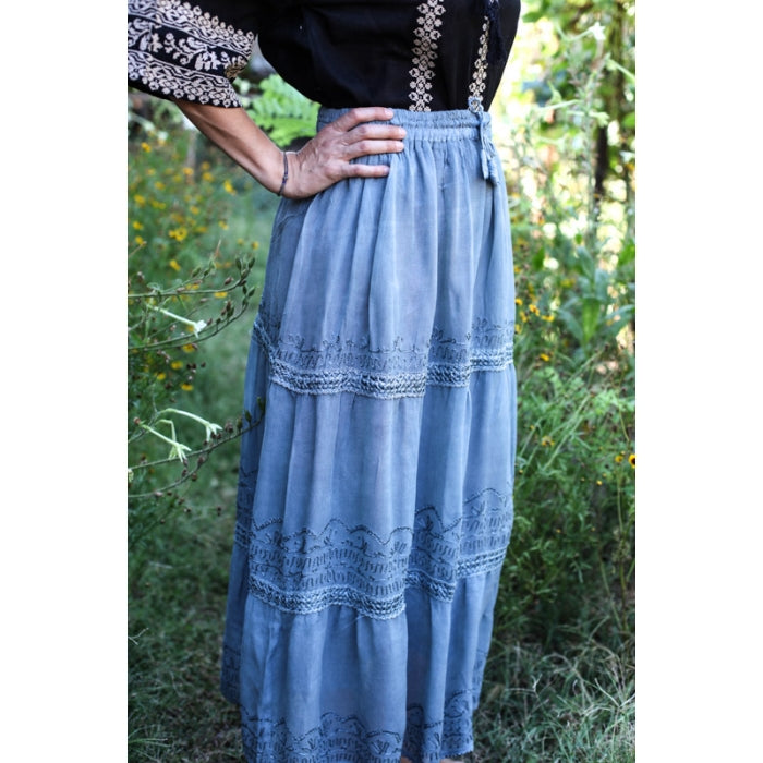 Fusta casual lunga din vascoza, elastic in talie, vaporoasa, include captuseala/ jupa.