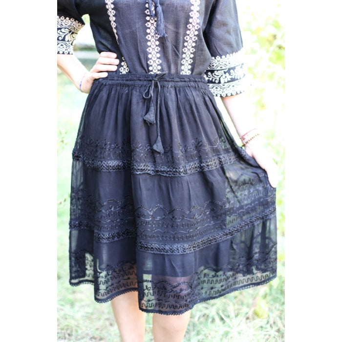 Fusta casual lunga din vascoza, elastic in talie, vaporoasa, include captuseala/ jupa.