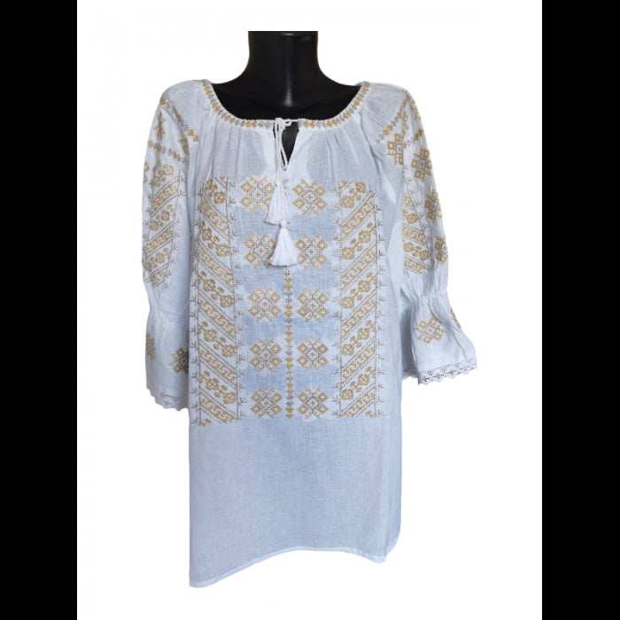 Explorează colecția noastră de ii românești cu mânecă trei sferturi, confecționate din bumbac natural și decorate cu broderii tradiționale autentice. Fiecare ie este lucrată cu atenție la detalii, oferind un stil elegant și confortabil, perfect pentru orice ocazie specială sau eveniment cultural. Disponibile într-o gamă variată de mărimi, de la S la 3XL, aceste ii combină tradiția cu modernitatea, aducând un omagiu moștenirii culturale românești.