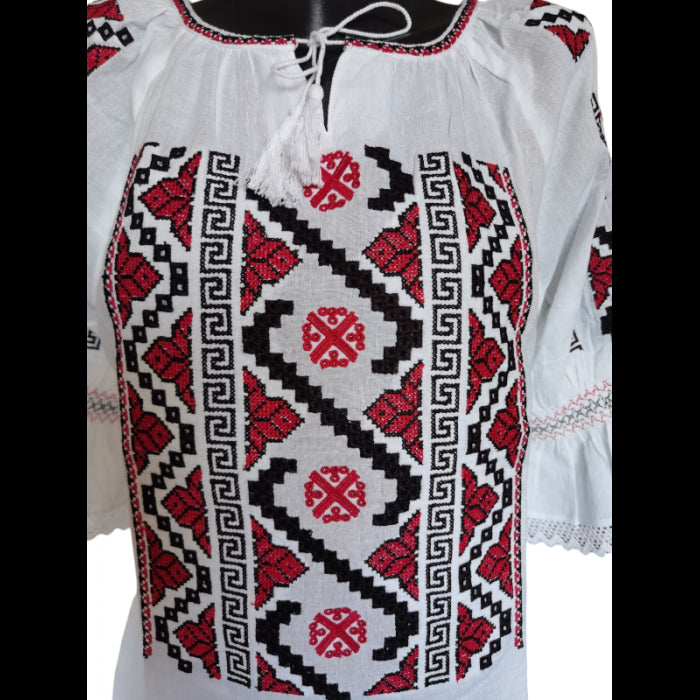 Explorează colecția noastră de ii românești cu mânecă trei sferturi, confecționate din bumbac natural și decorate cu broderii tradiționale autentice. Fiecare ie este lucrată cu atenție la detalii, oferind un stil elegant și confortabil, perfect pentru orice ocazie specială sau eveniment cultural. Disponibile într-o gamă variată de mărimi, de la S la 3XL, aceste ii combină tradiția cu modernitatea, aducând un omagiu moștenirii culturale românești.