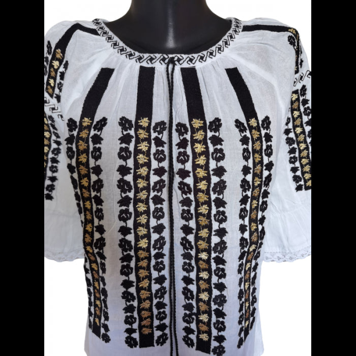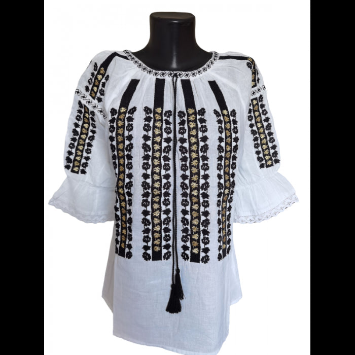 Explorează colecția noastră de ii românești cu mânecă trei sferturi, confecționate din bumbac natural și decorate cu broderii tradiționale autentice. Fiecare ie este lucrată cu atenție la detalii, oferind un stil elegant și confortabil, perfect pentru orice ocazie specială sau eveniment cultural. Disponibile într-o gamă variată de mărimi, de la S la 3XL, aceste ii combină tradiția cu modernitatea, aducând un omagiu moștenirii culturale românești.