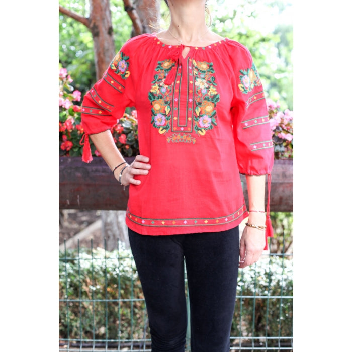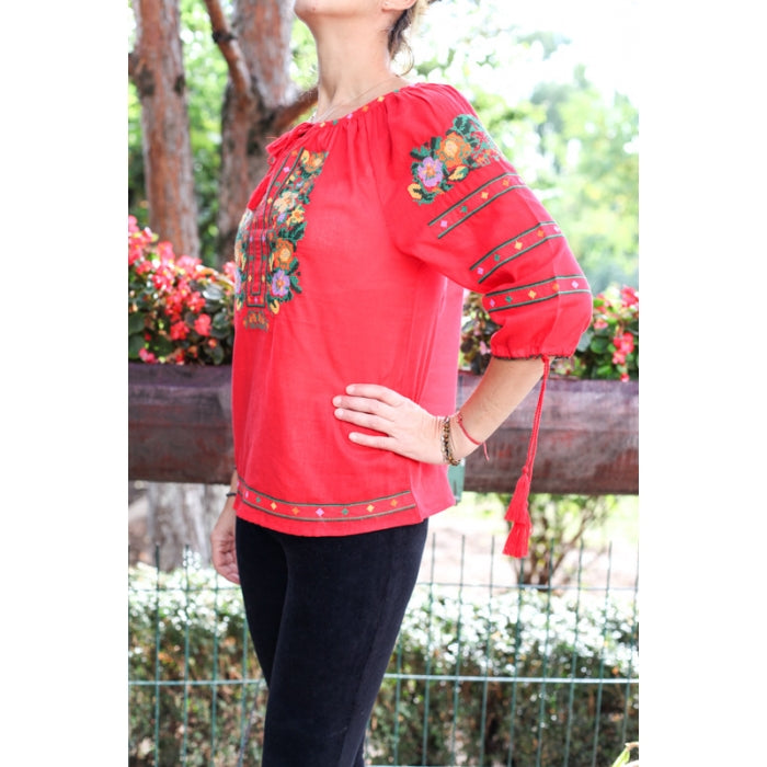 Ie traditionala brodata cu elemente naturale bogate si stralucitoare. O ie romaneasca stilizata deosebita, plina de culoare si rafinament. Delicatetea broderiei, puritatea materialului o fac o piesa de rezistenta in orice garderoba. Comanda acum ianationala!