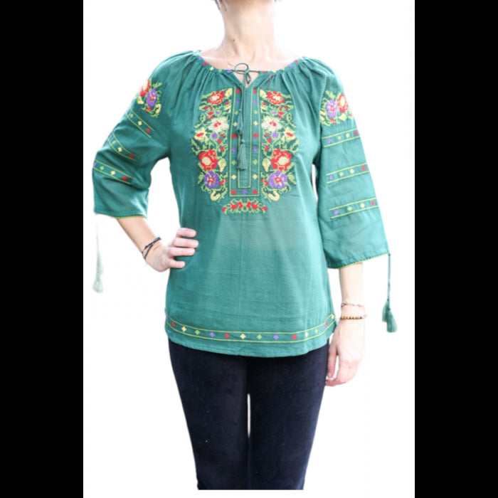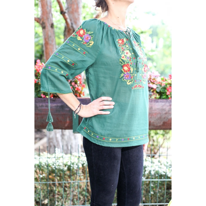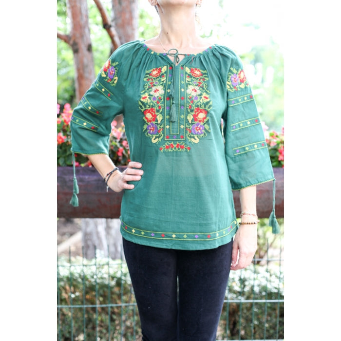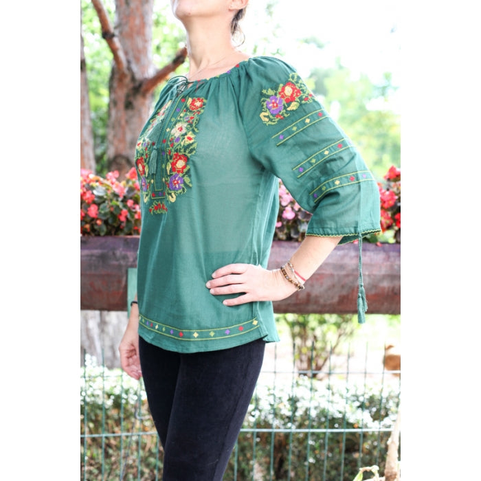 Bluza brodata la masina din panza de bumbac 100%.