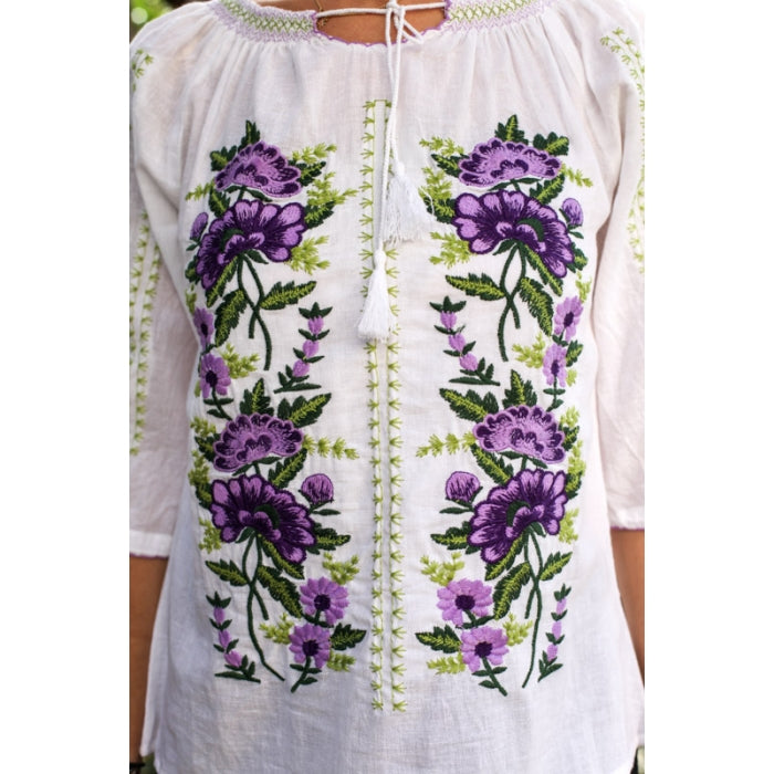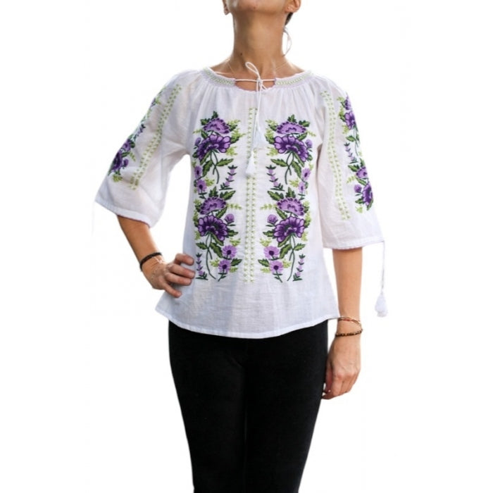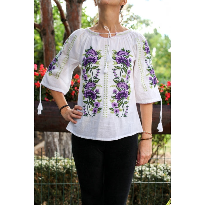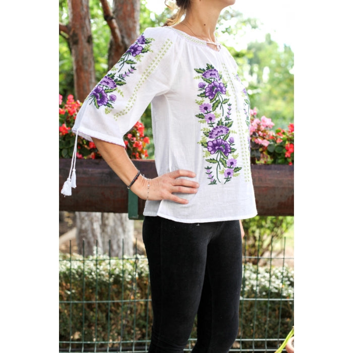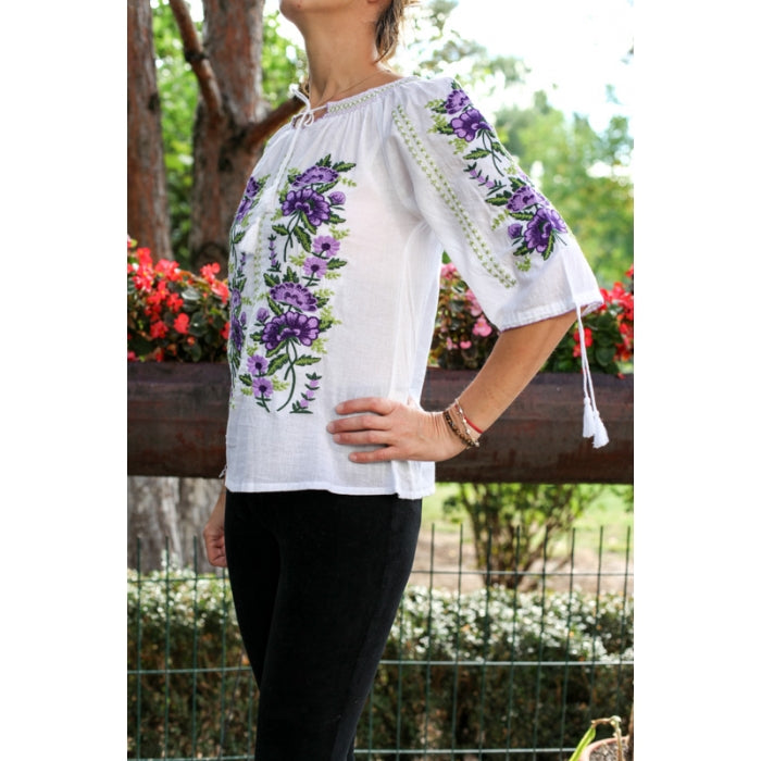 Bluza brodata la masina din panza de bumbac 100%.