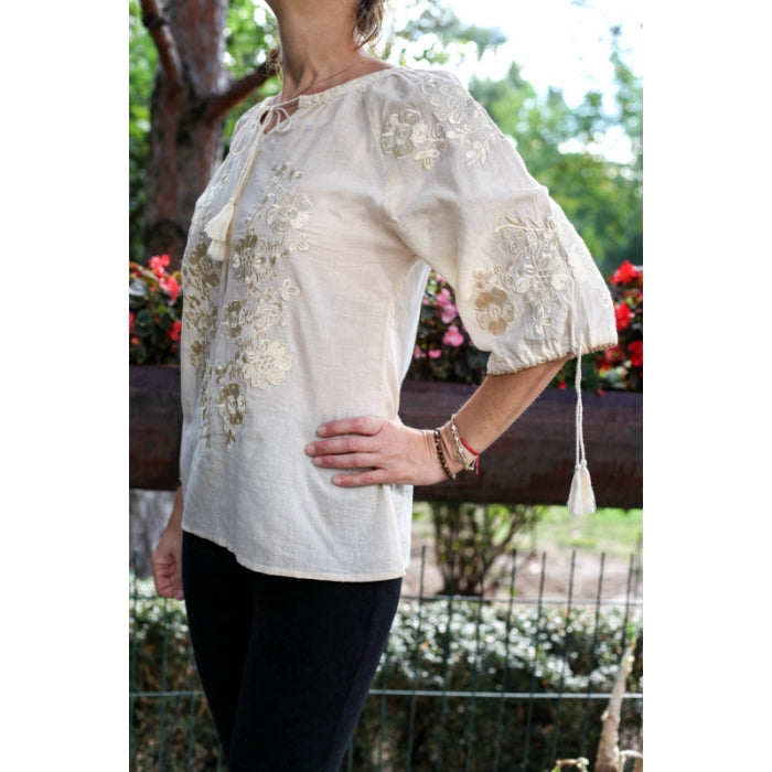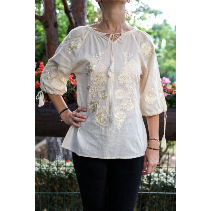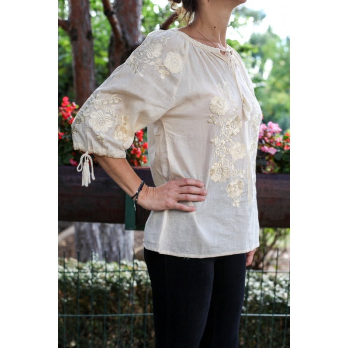Ie traditionala brodata cu elemente naturale bogate si stralucitoare. O ie romaneasca stilizata deosebita, plina de culoare si rafinament. Delicatetea broderiei, puritatea materialului o fac o piesa de rezistenta in orice garderoba. Comanda acum ianationala!