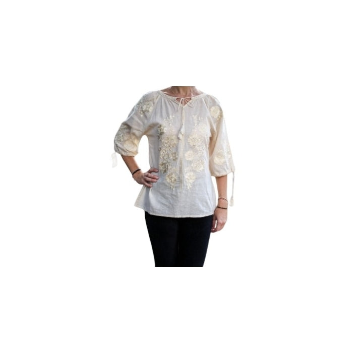 Panza plina, netransparenta, broderie bogata, iesita in relief si maneci trei sferturi - aceasta ie romaneasca stilizata este o achizitie perfecta pentru garderoba ta.