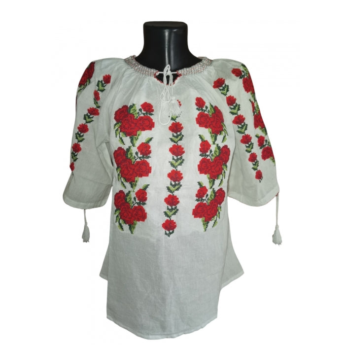 Această ie românească autentică cu mâneci trei sferturi este confecționată din bumbac natural de cea mai înaltă calitate, oferind atât confort, cât și durabilitate. Decorată cu broderii tradiționale roșii și negre, această ie aduce un omagiu moștenirii culturale românești, fiind perfectă pentru evenimente speciale sau pentru a adăuga o notă de autenticitate garderobei tale zilnice.