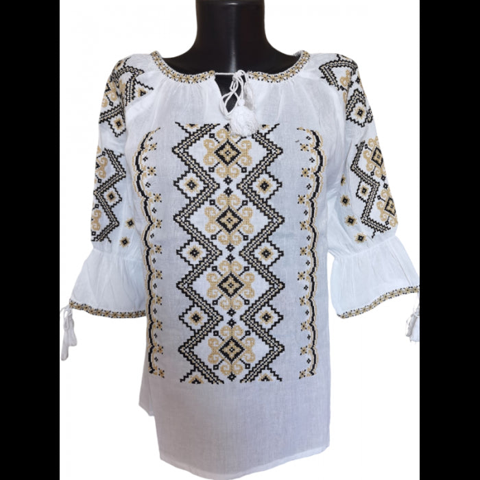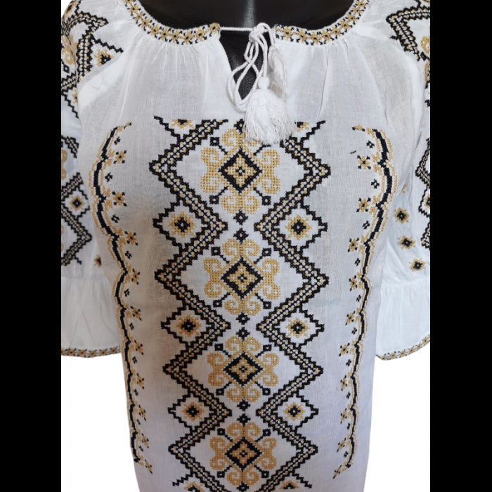 Explorează colecția noastră de ii românești cu mânecă trei sferturi, confecționate din bumbac natural și decorate cu broderii tradiționale autentice. Fiecare ie este lucrată cu atenție la detalii, oferind un stil elegant și confortabil, perfect pentru orice ocazie specială sau eveniment cultural. Disponibile într-o gamă variată de mărimi, de la S la 3XL, aceste ii combină tradiția cu modernitatea, aducând un omagiu moștenirii culturale românești.