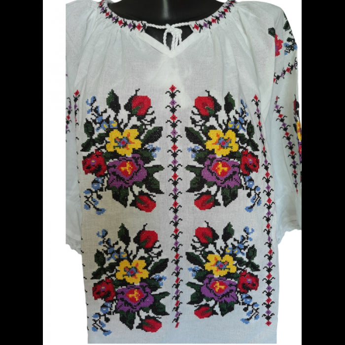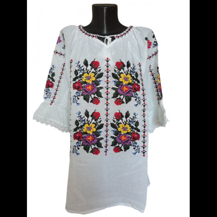 Explorează colecția noastră de ii românești cu mânecă trei sferturi, confecționate din bumbac natural și decorate cu broderii tradiționale autentice, brodata la masina. Fiecare ie este lucrată cu atenție la detalii, oferind un stil elegant și confortabil, perfect pentru orice ocazie specială sau eveniment cultural. Disponibile într-o gamă variată de mărimi, de la S la 6XL, aceste ii combină tradiția cu modernitatea, aducând un omagiu moștenirii culturale românești.