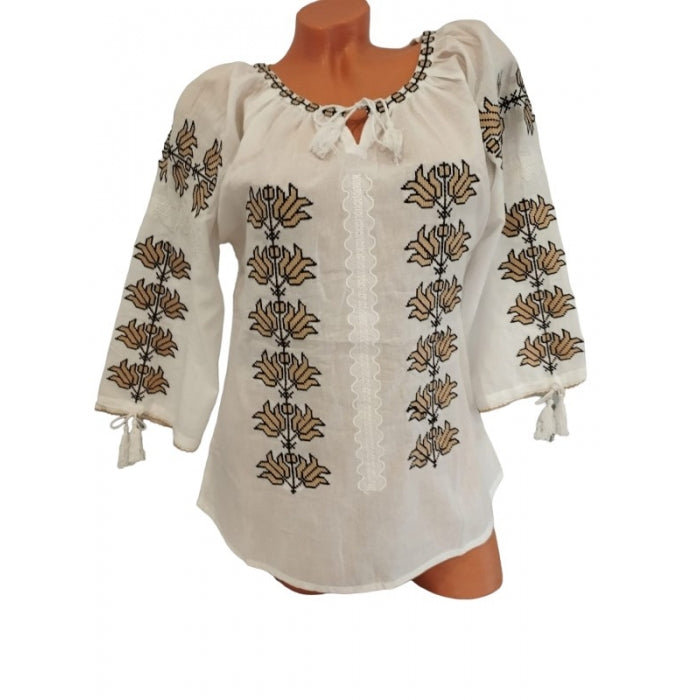 Explorează colecția noastră de ii românești cu mânecă trei sferturi, confecționate din bumbac natural și decorate cu broderii tradiționale autentice. Fiecare ie este lucrată cu atenție la detalii, oferind un stil elegant și confortabil, perfect pentru orice ocazie specială sau eveniment cultural. Disponibile într-o gamă variată de mărimi, de la S la 3XL, aceste ii combină tradiția cu modernitatea, aducând un omagiu moștenirii culturale românești.
