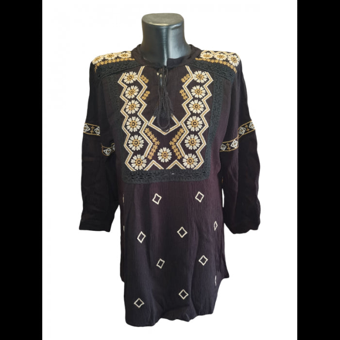 Alege o ie tradițională cu mâneci trei sferturi și motive florale brodate pentru evenimente speciale sau pentru purtarea de zi cu zi, și simte magia tradițiilor românești. Comandă acum online și bucură-te de livrare rapidă. Ia Tradițională Românească cu mâneca trei sferturi brodată cu motive tradiționale românești pe pânză de bumbac 100%, broderie cusută la mașină. Ghid de Mărimi: