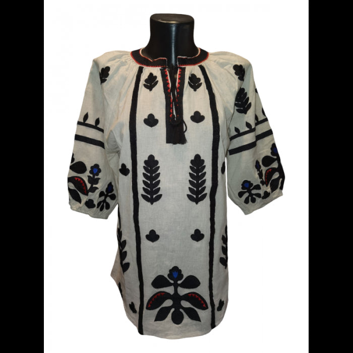 Această ie este un produs autentic, creat cu pasiune pentru tradiția românească.plorează colecția noastră de ii românești cu mânecă trei sferturi, confecționate din bumbac natural și decorate cu broderii tradiționale autentice. Fiecare ie este lucrată cu atenție la detalii, oferind un stil elegant și confortabil, perfect pentru orice ocazie specială sau eveniment cultural. Disponibile într-o gamă variată de mărimi, de la S la 3XL, aceste ii combină tradiția cu modernitatea, aducând un omagiu moștenirii culturale românești.