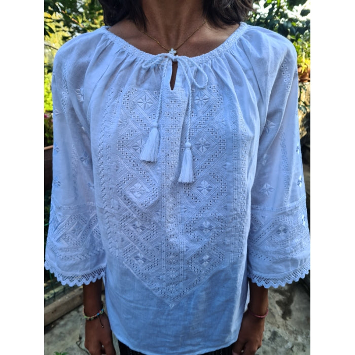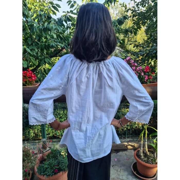 Alege o ie tradițională cu mâneci trei sferturi și motive florale brodate pentru evenimente speciale sau pentru purtarea de zi cu zi, și simte magia tradițiilor românești. Comandă acum online și bucură-te de livrare rapidă. Ia Tradițională Românească cu mâneca trei sferturi brodată cu motive tradiționale românești pe pânză de bumbac 100%, broderie cusută la mașină. Ghid de Mărimi: