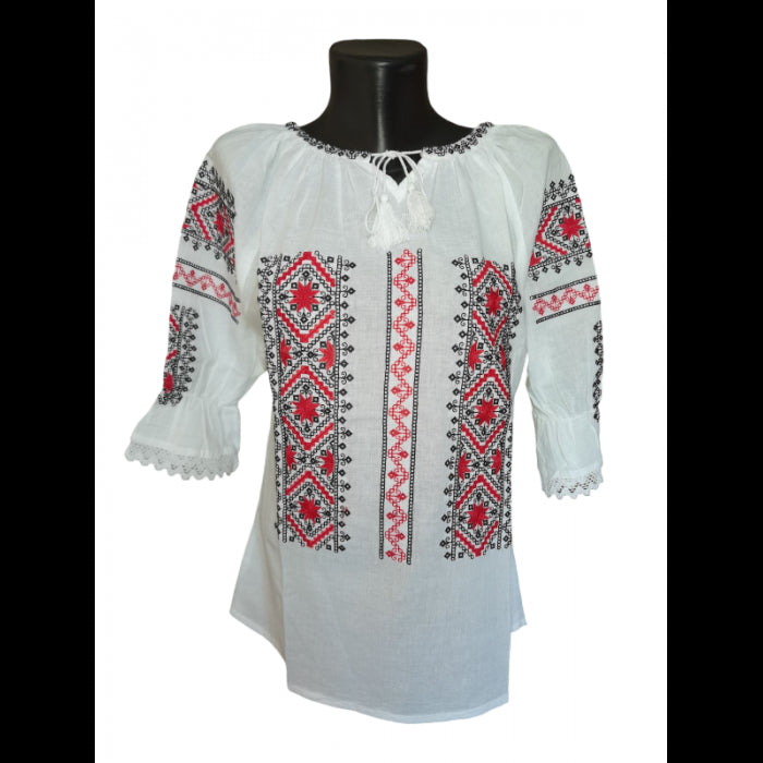 Explorează colecția noastră de ii românești cu mânecă trei sferturi, confecționate din bumbac natural și decorate cu broderii tradiționale autentice. Fiecare ie este lucrată cu atenție la detalii, oferind un stil elegant și confortabil, perfect pentru orice ocazie specială sau eveniment cultural. Disponibile într-o gamă variată de mărimi, de la S la 3XL, aceste ii combină tradiția cu modernitatea, aducând un omagiu moștenirii culturale românești.