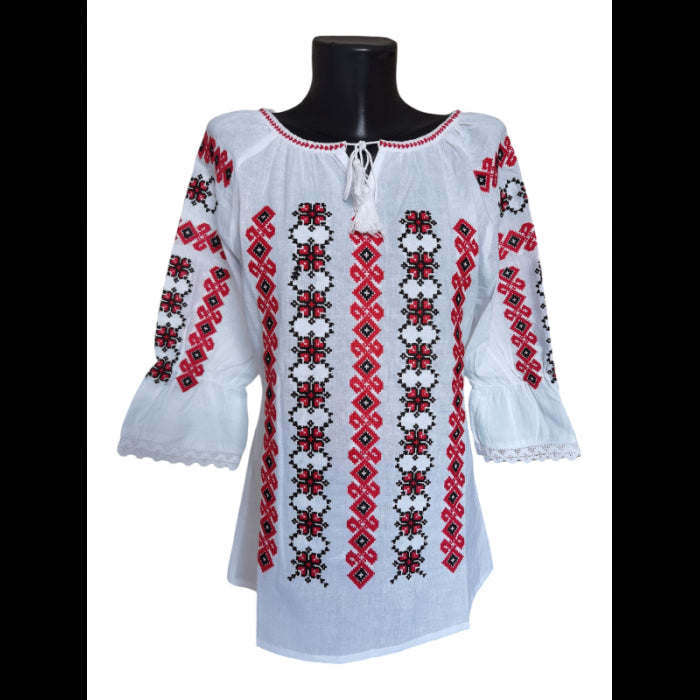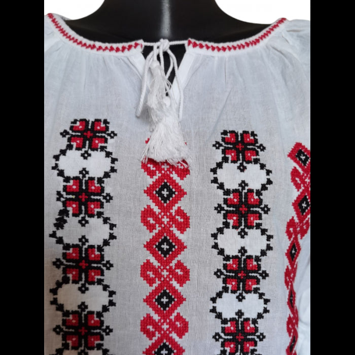 Explorează colecția noastră de ii românești cu mânecă trei sferturi, confecționate din bumbac natural și decorate cu broderii tradiționale autentice. Fiecare ie este lucrată cu atenție la detalii, oferind un stil elegant și confortabil, perfect pentru orice ocazie specială sau eveniment cultural. Disponibile într-o gamă variată de mărimi, de la S la 3XL, aceste ii combină tradiția cu modernitatea, aducând un omagiu moștenirii culturale românești.