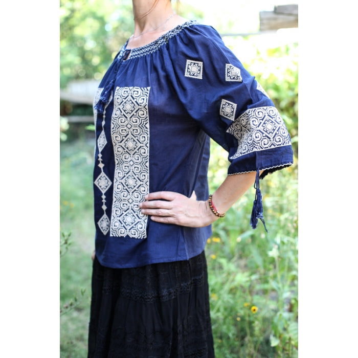 Bluza brodata la masina din panza de bumbac 100%.