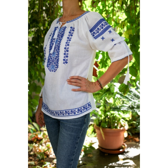 Bluza brodata la masina din panza de bumbac 100%.