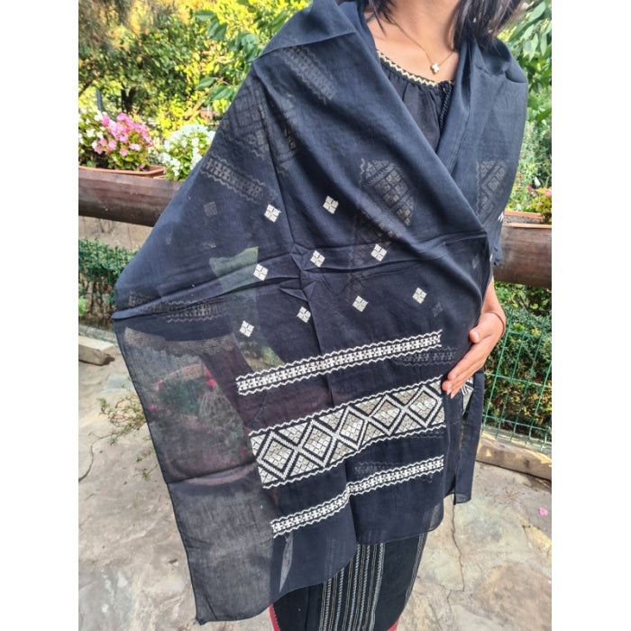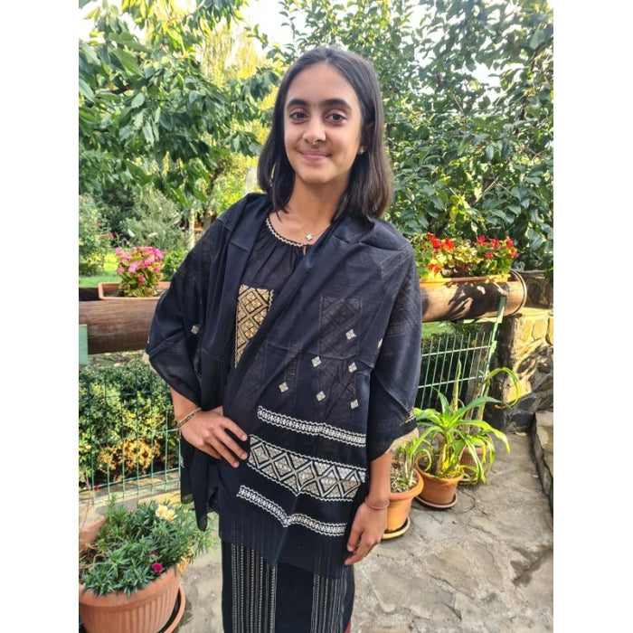 - Dimensiuni Generoase: Cu dimensiuni de 145 cm lungime și 55 cm lățime, această maramă este potrivită pentru a fi purtată în diferite moduri, atât pe cap, cât și pe umeri.