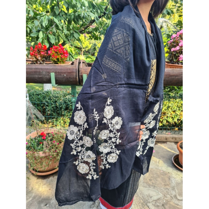 - Dimensiuni Generoase: Cu dimensiuni de 145 cm lungime și 55 cm lățime, această maramă este potrivită pentru a fi purtată în diferite moduri, atât pe cap, cât și pe umeri.
