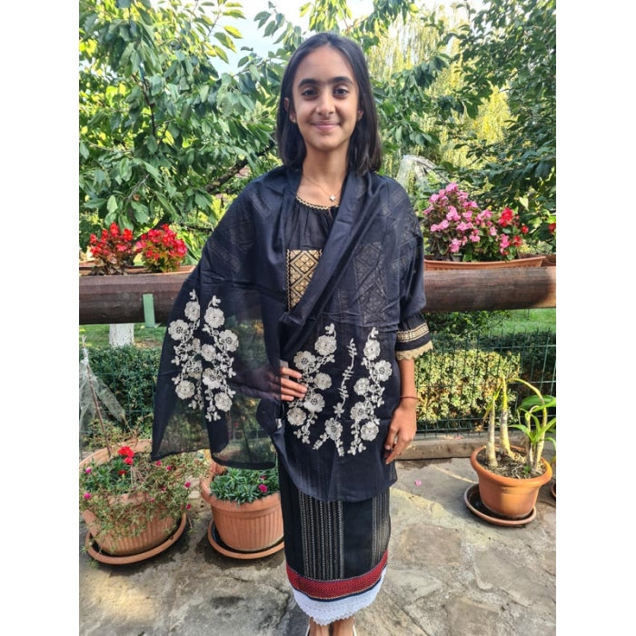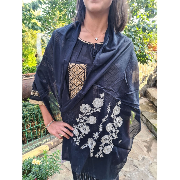 Adaugă un strop de tradiție și eleganță garderobei tale cu această maramă tradițională decorată cu motive traditionale. Realizată din bumbac de înaltă calitate, marama măsoară 145x55 cm, fiind perfectă pentru a completa orice ținută cu un accent autentic românesc. Designul delicat al florilor aduce un farmec aparte, făcând-o ideală atât pentru ocazii speciale, cât și pentru purtarea de zi cu zi. Fie că o porți ca pe un accesoriu de modă sau ca parte a unui costum popular, această maramă îți va oferi un look distinct și rafinat.