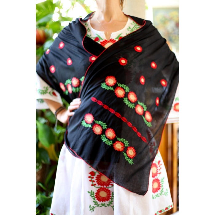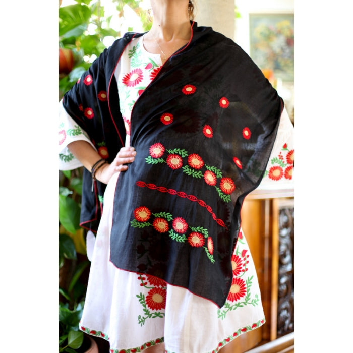 - Eșarfe și șaluri tradiționale, brodate sau imprimate, ideale pentru a accesoriza orice ținută, fie tradițională, fie modernă.