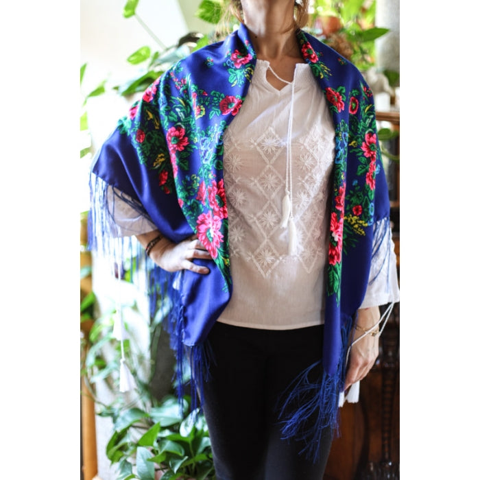 - Eșarfe și șaluri tradiționale, brodate sau imprimate, ideale pentru a accesoriza orice ținută, fie tradițională, fie modernă.
