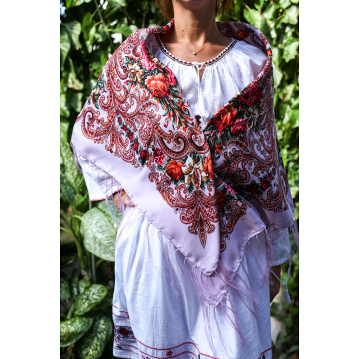 - Eșarfe și șaluri tradiționale, brodate sau imprimate, ideale pentru a accesoriza orice ținută, fie tradițională, fie modernă.