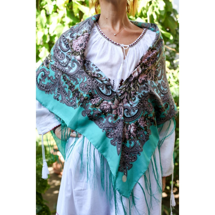 - Eșarfe și șaluri tradiționale, brodate sau imprimate, ideale pentru a accesoriza orice ținută, fie tradițională, fie modernă.