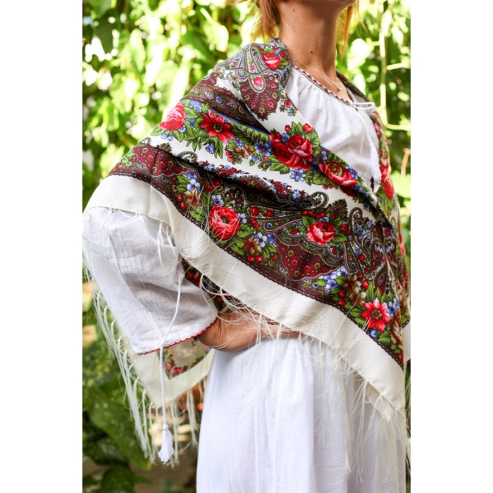 - Eșarfe și șaluri tradiționale, brodate sau imprimate, ideale pentru a accesoriza orice ținută, fie tradițională, fie modernă.