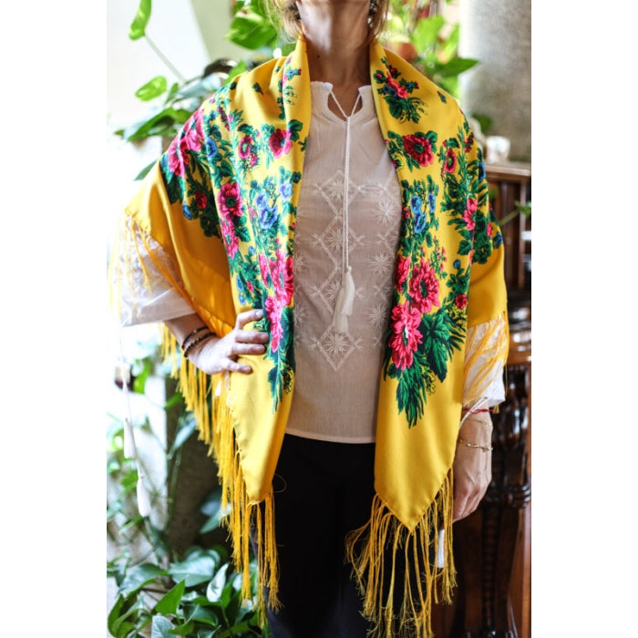 - Eșarfe și șaluri tradiționale, brodate sau imprimate, ideale pentru a accesoriza orice ținută, fie tradițională, fie modernă.