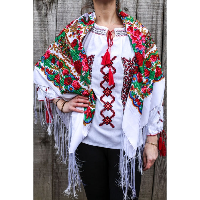 - Eșarfe și șaluri tradiționale, brodate sau imprimate, ideale pentru a accesoriza orice ținută, fie tradițională, fie modernă.