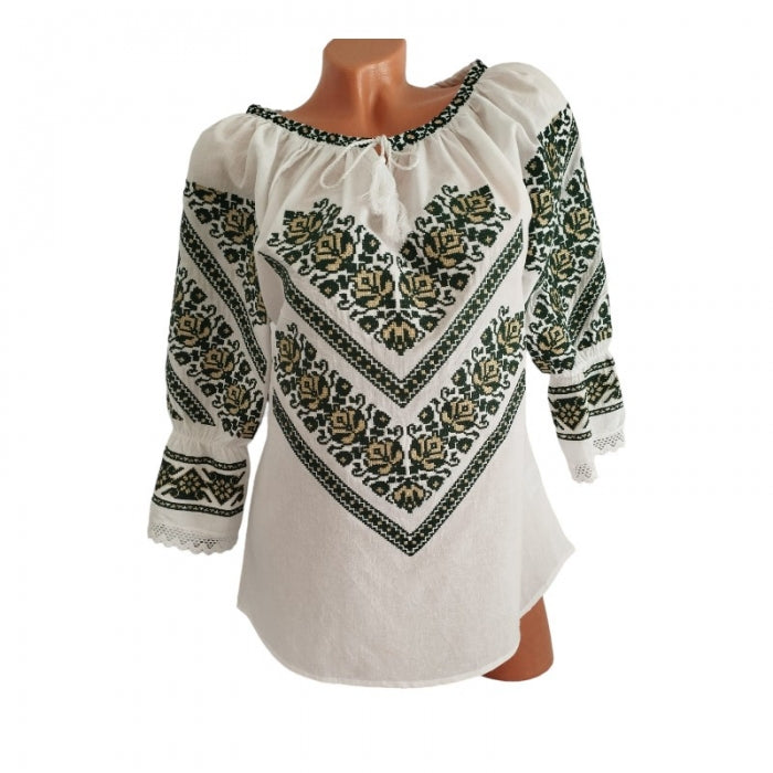 Autenticitate: Motivele tradiționale brodate manual reflectă bogăția culturii românești.