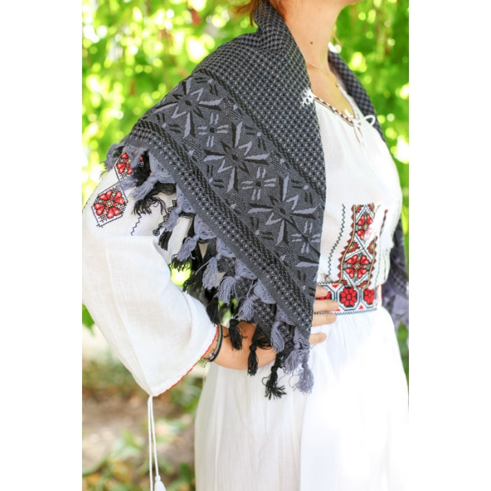 - Eșarfe și șaluri tradiționale, brodate sau imprimate, ideale pentru a accesoriza orice ținută, fie tradițională, fie modernă.