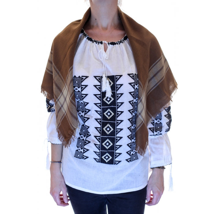 - Eșarfe și șaluri tradiționale, brodate sau imprimate, ideale pentru a accesoriza orice ținută, fie tradițională, fie modernă.
